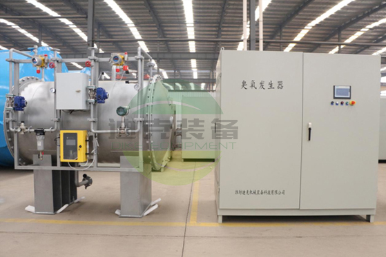 2:臭氧制備及控制系統(tǒng),前端輸送來(lái)的90%以上純度的氧氣經(jīng)過(guò)減壓閥組的作用,進(jìn)入到臭氧發(fā)生器的放電體內(nèi),臭氧發(fā)生器的放電體材質(zhì)304不銹鋼,外電極采用316L材質(zhì)的不銹鋼,絕緣介質(zhì)采用進(jìn)口石英材質(zhì),經(jīng)過(guò)精密軋制,管密度均勻,經(jīng)過(guò)30000V高壓的耐壓實(shí)驗(yàn),絕緣強(qiáng)度保障設(shè)備的安全運(yùn)行,內(nèi)外電極雙間隙放電,保證了臭氧放電的轉(zhuǎn)化率,風(fēng)冷+水冷的雙冷卻模式保障臭氧產(chǎn)量和濃度連續(xù)不間斷工作的穩(wěn)定,精準(zhǔn)控制的各種閥門(mén)采用ESG頂級(jí)品質(zhì),氣體流量?jī)x表采用臭氧專(zhuān)用定制的渦街流量計(jì),密封采用四氟材料,配備精準(zhǔn)的在線濃度檢測(cè)儀,實(shí)時(shí)傳輸產(chǎn)出臭氧的濃度,與渦街流量計(jì)傳輸?shù)絇LC信號(hào)結(jié)合實(shí)時(shí)顯示臭氧產(chǎn)量,濃度,流量等參數(shù),氧氣在高壓逆變器的作用下,高頻高壓產(chǎn)生高純度的臭氧,臭氧濃度可以高達(dá)10WT%,完整體系的運(yùn)作保證產(chǎn)出的臭氧流量產(chǎn)量恒定,壓力可調(diào),最高可以到0.1mpa.