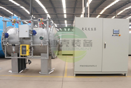 臭氧是氧氣的同素異形體,含有 3 個氧原子。臭氧在常溫常壓下為淡藍色氣體,水中的溶解度為 9.2mlO3/L,高于氧氣(42.87mg/L),水中溶解濃度高于 20mg/L 時呈紫藍色。臭氧有很強的氧化性,氧化還原電位為 2.07V,單質(zhì)中僅低于 F2(3.06V)。臭氧可將廢水中殘留的大分子、長鏈、難以生物降解的有機物部分直接礦化成二氧化碳與水,部分分解為小分子易生物降解物質(zhì),破壞不可生物降解有機物的結(jié)構(gòu),降低毒性,提高B/C比,從而保證后續(xù)生化法的處理效果。